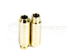 Integrated Engineering performance valve guides work as direct OEM replacements while offering several unique features to improve performance and increase longevity. IE valve guides are manufactured in our CNC machine shop from a proprietary bronze alloy and feature ultra-high concentricity for exact valve placement. This ensures that the head of the valve sits in the exact center of the seat, removing any possibility of leaks. Our premium alloy improves wear resistance, reduces friction, and improves heat transfer. By increasing thermal conductivity by 10%, you can expect extended valve life and reduced wear on valvetrain components. To increase airflow through the intake and exhaust ports, we have designed our valve guides with an aerodynamic tip that does not protrude into the airstream like the factory units. IE valve guides are designed to directly replace the factory guides and work well for all rebuilds, whether it be an OEM refresh or a complete race engine build!
