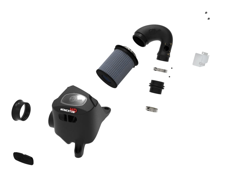 Momentum’s unique filter-to-housing interface was built to feature the largest air filter possible. This 8” tall, pre-oiled 360-degree radial flow air filter features a 4” flange and our pre-oiled Pro 10R media with ten layers of progressively finer cotton gauze media for maximum performance and filtration. Its inverted top and large surface area provide much longer life between maintenance intervals, while reinforced metal provides maximum strength to prevent filter collapse. This media is best suited for off-road applications. The smooth one-piece sealed housing, constructed of heat-resistant cross-linked polyethylene (XLPE), features our patent-pending filter-to-housing interface. Its innovative design minimizes the total number of parts, making for an easy installation. A large, clear sight window allows for hassle-free filter inspection, without having to disassemble your system. The housing connect to the factory air inlet, using no additional hardware, and features an optional auxiliary air inlet that pulls in additional air. A plug is provided to close the auxiliary opening. This system features a high quality, computer-designed, dyno-tuned intake tube to achieve maximum power gains while maintaining a perfect fit. Its XLPE material is heat soak resistant and extremely durable. Stainless-steel clamps are included for strength, and a premium bellows silicone coupling allows for ample flexibility. Momentum HD intakes are designed with fewer parts for a fast and easy installation. This product does not require a CARB EO# (Vehicle does not exist in U.S.).
