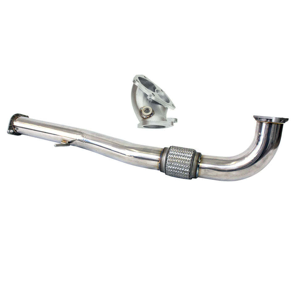 The Invidia Turbo Outlet directly replaces stock restrictive turbo outlet, allowing the factory turbo to flow exhaust gasses much more efficiently, reducing lag and improving throttle response. It is designed to work with your factory exhaust as well as any exhaust that would keep the factory Turbo outlet and stock donut gasket. Invidia Exhausts use an open bellmouth design to completely open up the exhaust flow path out of the turbocharger.