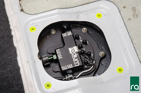 The plumbing kits include everything required to connect directly to an aftermarket (-8AN male) fuel rail and (-6AN male) FPR for both single and dual pump configurations. The includes a pre-made PTFE -8AN feed line from the hanger up to the engine bay and the kit re-uses the factory feed line as the regulator return line.