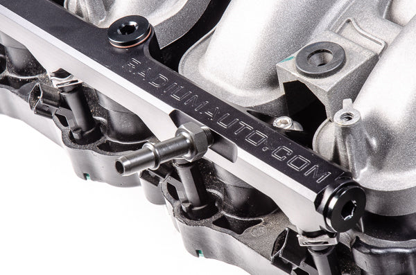 - For the 2018+ Mustang GT, Radium P/N: 14-0358 is required to adapt the OEM direct injection pump feed hose.