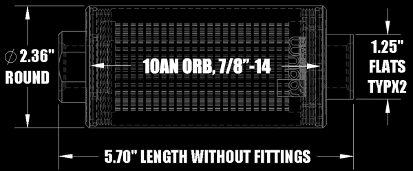 The Radium Engineering high flow fuel filter has a 3 piece body that is CNC machined from 6061 aluminum and Type-II anodized for maximum corrosion resistance. Both removable end caps feature large -10AN ORB female threaded ports for high flow plumbing.