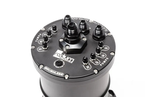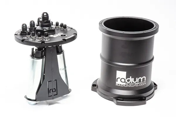 Recently redesigned for 2019, the Radium Engineering MPFST is the perfect solution for high power vehicles experiencing fuel starvation during aggressive driving. Multiple high flowing fuel pumps can be used in the surge tank. Because the compatible pumps utilize a check valve, the MPFST merges all pumps into a single outlet simplifying external plumbing. NOTE: The brushless Ti Automotive E5LM MPFST includes check valves