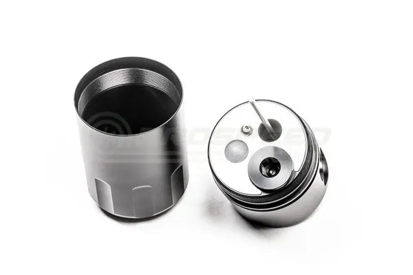 Radium Engineering catch cans feature large 10AN ORB ports, a 4AN ORB drain port, 2-step oil separation baffling, and an O-ring sealed dipstick. This kit mount using factory holes and integrate perfectly with the surrounding components. Catch cans (PCV side and CCV side) function completely independent of each other and are sold individually or together. They do NOT vent to atmosphere (VTA), thus are emissions and track legal. Closed loop systems remove the oil and sludge from the PCV gasses before it is routed to the engine to be burned. A closed loop system also promotes negative crankcase pressure for optimal performance. Furthermore, closed systems prevent unwanted oil vapors from entering the cabin. The dipsticks built into the catch cans allow easy inspection of accumulated fluid. No cutting, drilling or permanent modification to the vehicle is required.Â