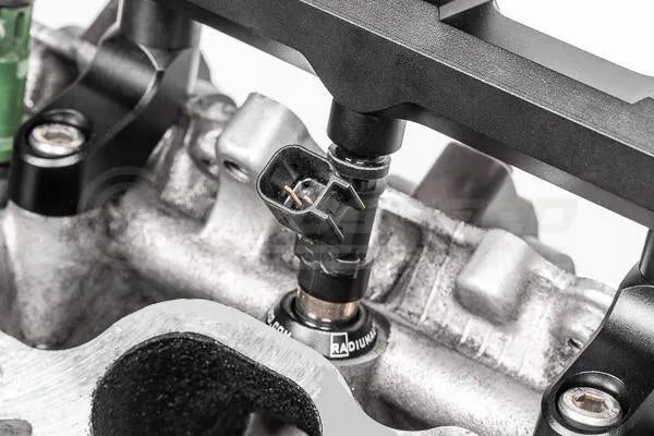 The Radium Engineering fuel rail features 11mm injector bores making it compatible with the factory Subaru EZ30 Phase-I "air-assist" fuel injectors. No modifications are needed. If preparing to use aftermarket fuel injectors, read below.