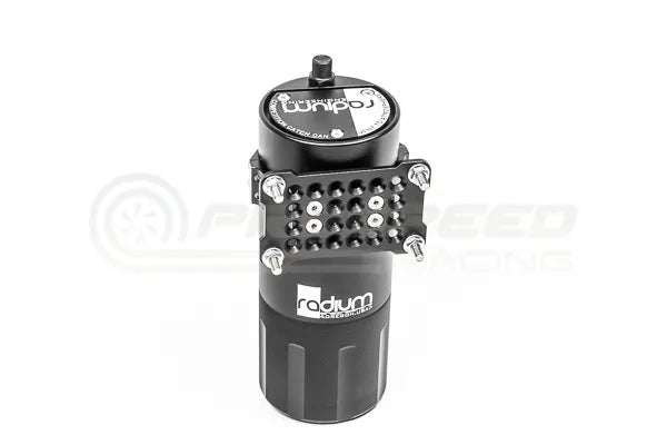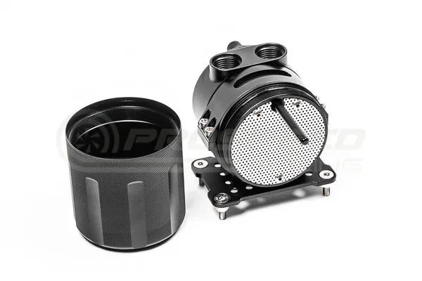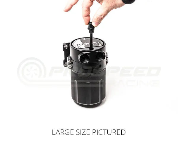 Radium Competition Catch Cans (CCC) meet the common 1 quart minimum capacity requirements dictated by many organizing bodies including SCCA, NASA, and Formula Drift. This CCC is specifically made to vent to atmosphere (VTA). For a VTE competition catch can that recirculates clean air back into the intake, see part number 20-0071 and 20-0072. There is a large and extra large version of the VTA competition catch can (see part number 20-0772 for Large). Both VTA CCCs have 2 adjacent inlets making them complimentary to dual bank engines. Both inlet ports are machined with 10AN ORB (7/8"-14) threads.