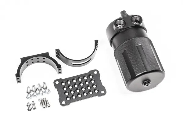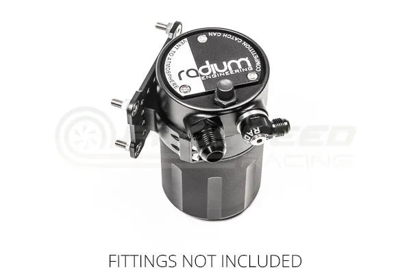 Radium Competition Catch Cans (CCC) meet the common 1 quart minimum capacity requirements dictated by many organizing bodies including SCCA, NASA, and Formula Drift. This CCC is specifically made to vent to atmosphere (VTA). For a VTE competition catch can that recirculates clean air back into the intake, see part number 20-0071 and 20-0072. There is a large and extra large version of the VTA competition catch can (see part number 20-0771 for Extra Large). Both VTA CCCs have 2 adjacent inlets making them complimentary to dual bank engines. Both inlet ports are machined with 10AN ORB (7/8"-14) threads.