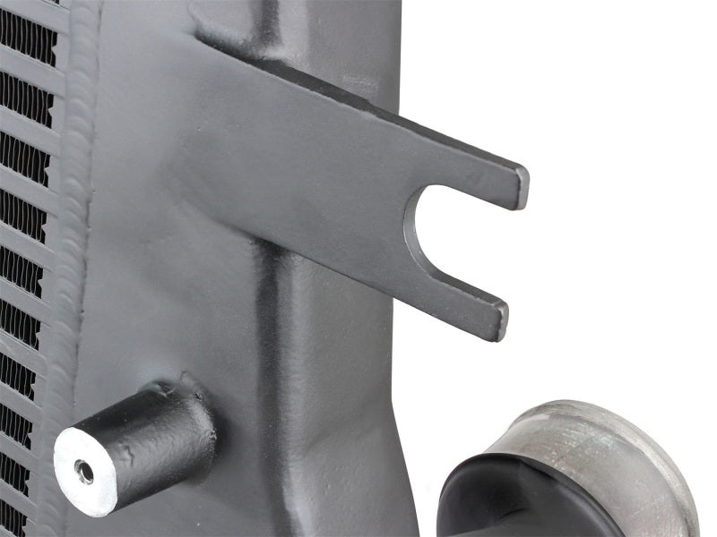 Bladerunner Intercoolers represent the next generation of intercoolers. The Bladerunner intercoolers utilize a 3 IN bar and plate design that out performs OE style tube and fin core designs. The end tanks are constructed out of 3/16 IN TIG welded aluminum plate tanks that incorporate three multi-directional vanes that efficiently direct air flow through the entire core for maximum cooling. The Bladerunner intercooler also comes with 4-1/8 IN pre-tapped ports for easy gauge installation as well as other auxiliary input options. Tested at 200psi which is perfect for the high boost applications. In recent testing the Bladerunner intercooler produced a 200 deg. temperature drop and a 100 deg. EGT drop as well as increasing air flow by 30 percent. Dont waste your time and money on modified factory intercooler. Invest in the aFe Bladerunner intercooler. the most sophisticated intercooler design on the planet.