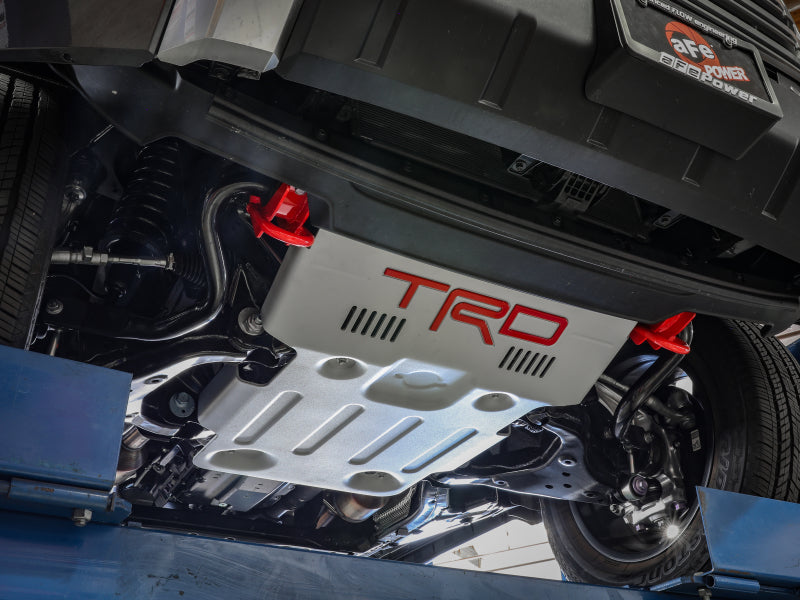 Add dedicated front recovery points to your Toyota Tundra. aFe POWER Tow Loops mount directly to the frame and are much safer than the factory tie-down loop when towing or recovering a stuck vehicle. The 3/4 IN solid steel loop is designed to safely withstand and distribute heavy loads allowing access to several recovery attachments for a strong and durable recovery point. Powder-coated red so they are easily recognized in the elements during off-road adventures. aFe POWER front tow hooks are constructed from 3/16 IN laser-cut, CNC machined steel brackets, and 3/4 IN solid steel bar. MIG welded for strength and durability. Bolts Directly onto the frame, using the front sway bar mounts with no drilling or modifications. Retains the front sway bar use while clearing the Active Aero front spoiler and factory bumper. (Patent Pending)