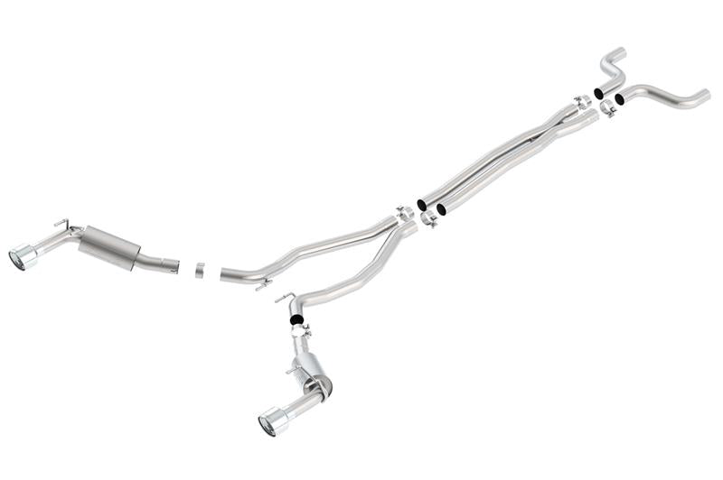 Fits vehicles WITHOUT Ground Effects Package (GFX). System features a merge X-Pipe for increased performance and improved sound. System has polished T-304 stainless steel tips. Borla(r) Cat-Back(tm) & Axle-Back exhaust systems feature patented straight-through and multi-core technology designed to unleash hidden horsepower. Increased exhaust velocity adds power, driving excitement, fuel economy, and the distinctive Borla(r) Sound of Power respected by motoring enthusiasts everywhere. Each system is built from premium T-304 stainless steel, superior to T-400 series knockoffs (such as 409), to give you the absolute best in performance and durability. Ultra-smooth mandrel bends ensure maximum flow & power, and precision computer-controlled CNC manufacturing ensures an accurate fit. Best of all, Borla(r) stands behind every system with a Million-Mile Warranty. Just what you'd expect from the world's most experienced (and most winning) exhaust brand.