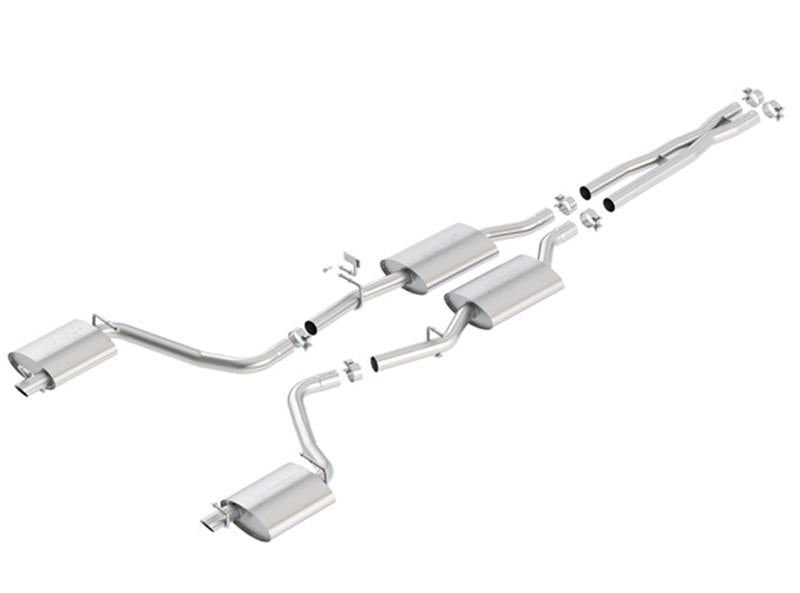 System contains a merge X-Pipe for increased performance and improved sound. Tips NOT included use factory bezel/ valance. Borla(r) Cat-Back(tm) and Axle-Back exhaust systems feature patented straight-through and multi-core technology designed to unleash hidden horsepower. Increased exhaust velocity adds power, driving excitement, fuel economy, and the distinctive Borla(r) Sound of Power respected by motoring enthusiasts everywhere. Each system is built from premium T-304 stainless steel, superior to T-400 series knockoffs (such as 409), to give you the absolute best in performance and durability. Ultra-smooth mandrel bends ensure maximum flow& power, and precision computer numerical control (CNC) manufacturing ensures an accurate fit. Best of all, Borla(r) stands behind every system with a Million-Mile Warranty. Just what you'd expect from the world's most experienced (and most winning) exhaust brand.