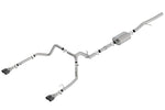 EXCEPT ZR2 & AT4X models. Factory Split Rear Exit vehicles ONLY. This system features a black chrome finish on T-304 stainless steel tips. Using Borla(r) Stainless Steel Polish p# 21461 is NOT recommended with these black chrome tips. We suggest cleaning the tips with hot water and a microfiber cloth. Add Adapter 60706 for Crew Cab with Standard Bed (6' 7") 157" Wheelbase vehicles. System features Borla(r)'s aggressive ATAK(r) muffler and Polyphonic Harmonizer Technology which utilizes patented units that contain pipes of different diameters and lengths to create multiple exhaust notes that harmonize to deliver a clean, rich, full-bodied sound. Replace the Polyphonic Harmonizer behind the muffler in the ATAK(r) system with muffler 60679 to attain the "S-Type" sound level (quieter than ATAK(r)). Borla(r) Cat-Back(tm) and Axle-Back exhaust systems feature patented straight-through and multi-core technology designed to unleash hidden horsepower. Increased exhaust velocity adds power, driving excitement, fuel economy, and the distinctive Borla(r) Sound of Power respected by motoring enthusiasts everywhere. Each system is built from premium T-304 stainless steel, superior to T-400 series knockoffs (such as 409), to give you the absolute best in performance and durability. Ultra-smooth mandrel bends ensure maximum flow& power, and precision computer numerical control (CNC) manufacturing ensures an accurate fit. Best of all, Borla(r) stands behind every system with a Million-Mile Warranty. Just what you'd expect from the world's most experienced (and most winning) exhaust brand.