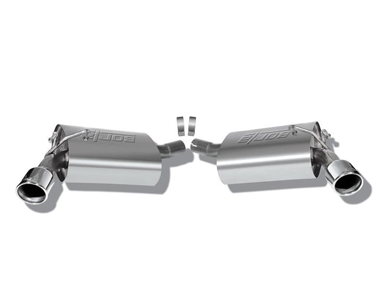 Does NOT fit 2013 RS w/quad-tips a.k.a. Dual-Mode Exhaust. Chevrolet pulled all the stops to ensure the re-launch of the legendary Camaro was worth the wait to agonized fans, and the world's most winning exhaust has responded in kind. Rather than simply work from concept vehicles and drawings, Borla(r) RD engineers headed down under to the GM Holden facility in Australia to work directly with the GM Camaro team. The result of this exciting collaboration is a series of Cat-Back(tm) and Axle-Back exhaust systems, providing the ultimate in tuned performance, sound, style and fitment. Borla(r)'s Camaro Cat-Back(tm) arsenal is led by an aggressive high-performance "S-Type" system (PN140280) that utilizes patented XR-1 technology from Borla(r) exhausts used in race-winning Corvettes and other GM champions. Drivers who prefer a more subdued sound will opt for (PN140281), a Touring version that combines a racing heart with a more stealth-like growl. Each of these Cat-Back(tm) options comes complete with an x-pipe for increased flow and richer sound, and is also available as an Axle-Back system S-Type (PN11775), and Touring (PN11774). On top of the power, sound and looks, drivers also enjoy significant weight savings with a Borla(r) exhaust, shedding as much as 43 lbs. over stock enough to make a difference at the pump and the track. Like all Borla(r) exhaust products, the Camaro systems feature durable high-quality T-304 austenitic stainless steel construction, patented power when you want it, fuel economy when you need it technology, mirror-polished T-304 stainless steel tips and a Million-Mile Warranty. This product is a direct result of Borla(r)'s 30-year legacy with race-winning Chevrolets from Indy to Daytona.