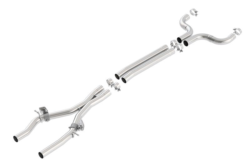 This 2.75" diameter X-Pipe with Mid-Pipes is designed for use with Borla(r) Axle-Back systems ONLY. The system contains a Merge X-Pipe to unleash hidden horsepower and create a custom sound. The system includes AFM valves. Built from premium, high-quality T-304 austenitic stainless steel, superior to T-400 series (such as 409), to give you the absolute best in performance and durability. Ultra-smooth mandrel bends ensure maximum flow & power, and precision computer numerical control (CNC) manufacturing ensures an accurate fit. Best of all, Borla(r) stands behind every Mid Pipe with a X-Pipe with a Million-Mile Warranty. Just what you'd expect from the world's most experienced (and most winning) exhaust brand.