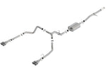 This 3" diameter into dual 2.75" Borla(r) Cat-Back(tm) system features the classic S-Type sound level with no drone inside the vehicle, and dual 3.5" round carbon fiber tips with bright centers on each tail pipe. Bright chrome on T-304 stainless steel tips and black chrome on T-304 stainless steel tips are also available. Installation REQUIRES removal of the Factory Valance Tips. Borla(r) Cat-Back(tm) & Axle-Back exhaust systems feature patented straight-through and multi-core technology designed to unleash hidden horsepower. Increased exhaust velocity adds power, driving excitement, fuel economy, and the distinctive Borla(r) Sound of Power respected by motoring enthusiasts everywhere. Each system is built from premium T-304 stainless steel, superior to T-400 series knockoffs (such as 409), to give you the absolute best in performance and durability. Ultra-smooth mandrel bends ensure maximum flow & power, and precision computer numerical control (CNC) manufacturing ensures an accurate fit. Give your Silverado or Sierra the power and sound it deserves, bolt on a Borla(r) . Best of all, Borla(r) stands behind every system with a Million-Mile Warranty. Just what you'd expect from the world's most experienced (and most winning) exhaust brand.