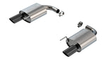 This 2.5" diameter Borla(r) Axle-Back exhaust system is designed to fit the 5.0L Mustang GT that is NOT equipped with Active Valve Performance Exhaust. Muffler contains Polyphonic Harmonizer technology which utilizes patented units that contain pipes of different diameters and lengths to create multiple exhaust notes that harmonize to deliver a clean, rich, full-bodied sound. It features 4" black chrome on T-304 stainless steel tips and the aggressive ATAK(r) sound level with no drone inside the vehicle. Using Borla(r) Stainless Steel Polish p# 21461 is NOT recommended with these black chrome tips. We suggest cleaning the tips with hot water and a microfiber cloth. Systems with bright chrome on T-304 stainless steel tips, and carbon fiber tips are also available. It fits both the coupe and convertible models. The straight-through and patented multi-core technology is designed to unleash hidden horsepower. Increased exhaust velocity adds power, driving excitement, fuel economy, and the distinctive Borla(r) Sound of Power respected by motoring enthusiasts everywhere. Each system is built from premium T-304 stainless steel, superior to T-400 series knockoffs (such as 409), to give you the absolute best in performance and durability. Ultra-smooth mandrel bends ensure maximum flow & power, and precision computer numerical control (CNC) manufacturing ensures an accurate fit. Best of all, Borla(r) stands behind every system with a Million-Mile Warranty. Just what you'd expect from the world's most experienced (and most winning) exhaust brand.