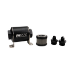 In-line fuel filter element and housing kit, stainless steel 5 micron, -6AN, 70mm. Universal