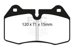 EBC Yellowstuff is an aramid fibre based brake compound with high brake effect form cold and is possibly one of the first ever compounds that can be used for STREET AND TRACK DRIVING. These pads do not require warm up but do get even stronger under the heat of hard driving. These are not a low dust pad and if your desire is for a low dust premium street use pad, you should consider EBC Redstuff.When considering full race use, Yellowstuff has been a strong favourite, having been used for two years in the Swedish Camaro Cup and at numerous other race events where a stock caliper system is fitted.It is also the choice of 90-percent of the Mazda MX5 Miata competitors in the UK race series and has an unblemished record as rotor friendly track pad for vehicles up to 2000 lbs weight or 200 BHP.In the USA the SCCA and NASA drivershave been testing Yellowstuff with feedback and good reports POURING in from a 543 test driver major market proving event with these groups. Read that figure again 543 test drivers.There is no guesswork here.
