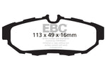 EBC Yellowstuff is an aramid fibre based brake compound with high brake effect form cold and is possibly one of the first ever compounds that can be used for STREET AND TRACK DRIVING. These pads do not require warm up but do get even stronger under the heat of hard driving. These are not a low dust pad and if your desire is for a low dust premium street use pad, you should consider EBC Redstuff.When considering full race use, Yellowstuff has been a strong favourite, having been used for two years in the Swedish Camaro Cup and at numerous other race events where a stock caliper system is fitted.It is also the choice of 90-percent of the Mazda MX5 Miata competitors in the UK race series and has an unblemished record as rotor friendly track pad for vehicles up to 2000 lbs weight or 200 BHP.In the USA the SCCA and NASA drivershave been testing Yellowstuff with feedback and good reports POURING in from a 543 test driver major market proving event with these groups. Read that figure again 543 test drivers.There is no guesswork here.