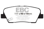 There are TWO reasons our customers love Redstuff, First because they are the lowest dust pad we have encountered by reducing dust by 60-90-percent. Plus the minimal dust you see is very easily removed with a simple sponge wash as it contains no steel fibre particles as in ALL OTHER pads. Second they brake like an alligator right from cold (as good as Original pads or better) and just get better as they heat up.This material is a Synthetic Fiber based brake compound enhanced with ceramic particles. If you have previously tried EBC redstuff (pre-ceramic compound) this material is light years ahead. It lasts longer; it brakes better and is quieter. Being a hard wearing pad, bed-in times can be as long as 1000 miles and drivers must be patient until the pad takes up the shape of their disc (brake rotor). This is a truly impressive fast road pad for repeated heavy braking.It emits far less dust than semi-metallic pads and has been proven to stop a passenger car/sedan/sport compact/hot hatch 13 metres quicker than OEM pads from 100mph/160kph. Features EBC Brake-In surface coating which conditions rotor surface and accelerates pad bed-in. Nominal friction coefficient 0.5 with approx. 50-percent dust reduction.Most EBC Red Ceramic pads are approved to ECE R90 brake safety regulation.