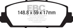 Designed for premium street driving offering better brake effect up to 600-degrees C (1100-degrees F). EBC Greenstuff has a high initial brake effect and gives drivers confidence from first application of the brake pedal. There is no such thing as a NO DUST pad. The very nature of how a brake works requires that some dust be generated to avoid rotor vibration (shimmying). The EBC pad creates less dust and dust is more easily washed off than most. All pads create more dust as they are bedding in especially if rotors are worn. Nominal friction coefficient 0.55. For heavier faster cars and vehicles above 200bhp we strongly recommend Redstuff which DOES offer much less dust.