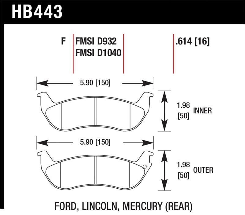 High Performance Street disc brake pads are legendary for increasing stopping power on street-legal vehicles. Increasing the performance of your vehicles braking system is easy when you choose Hawk Performances HPS braking compound. The High Performance Street compound offers a higher coefficient of friction over stock brake pads and can provide you 20 to 40 percent more stopping power and higher resistance to brake fade than most standard replacement pads. Less fade means you will have better pedal feel and more consistent performance in a durable brake pad that generates less brake dust.
