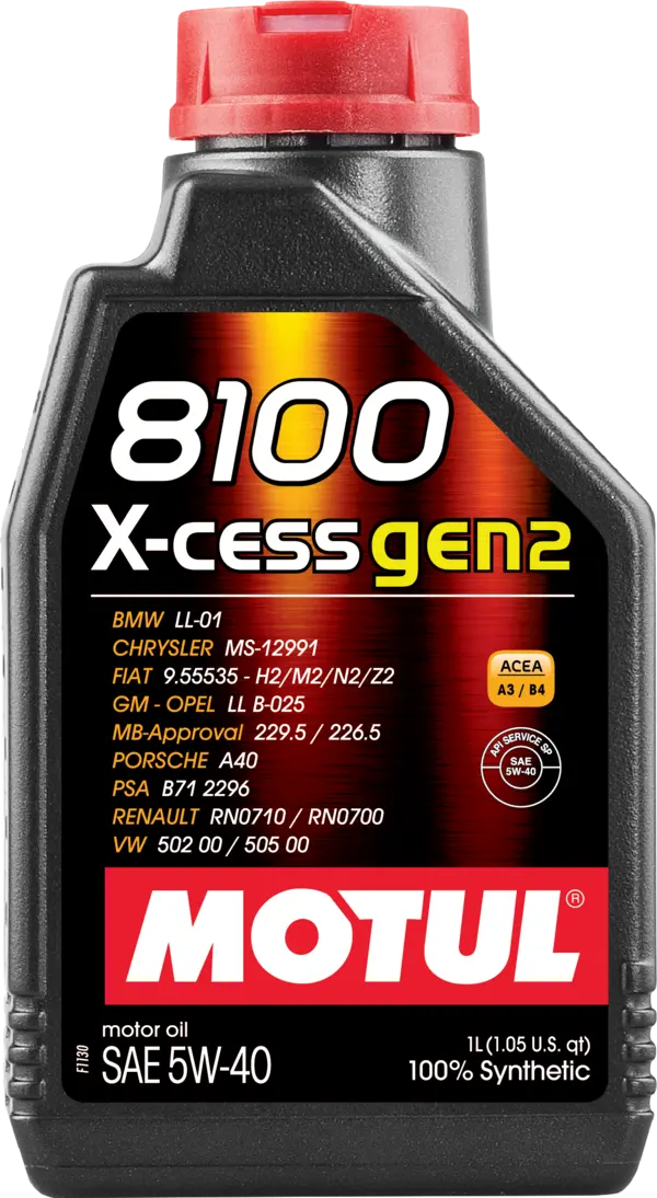 Motul 8100 X-cess Gen2 is a premium 100% synthetic engine oil designed for modern high-performance petrol and diesel engines. Formulated to meet the latest manufacturer approvals, it offers outstanding wear protection, superior cleaning power, and stability under high temperatures.