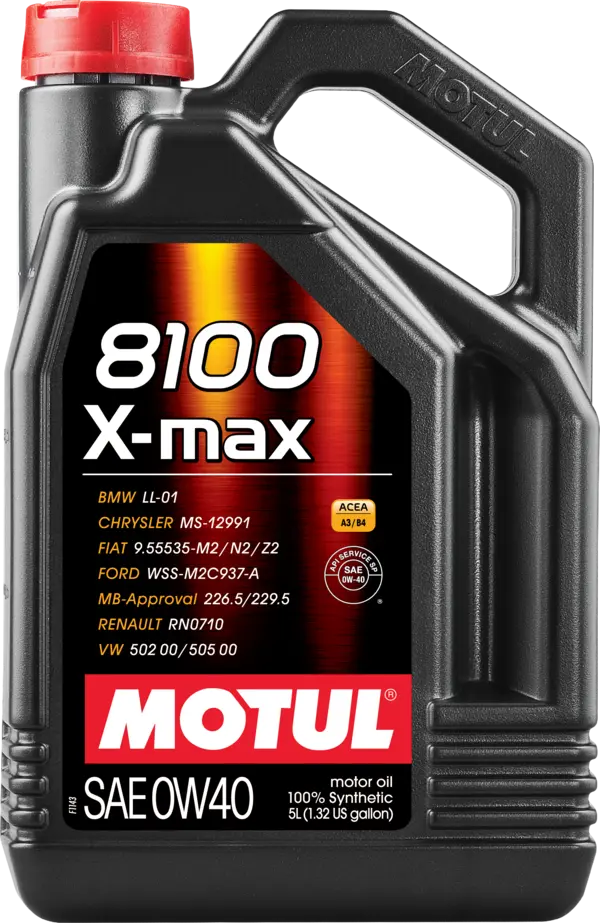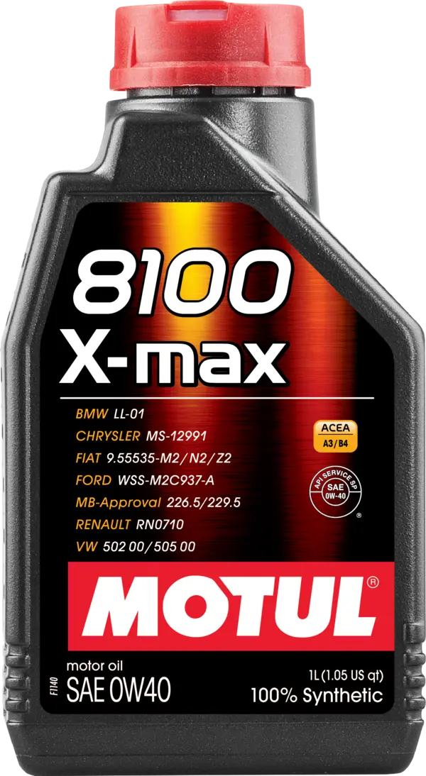 MOTUL 8100 X-MAX 0W-40 is a high-performance 100% synthetic oil using Full SAPS technology, designed for modern, powerful engines—gasoline or diesel, turbo or naturally aspirated. It offers excellent wear protection, thermal stability, and performance under high loads.