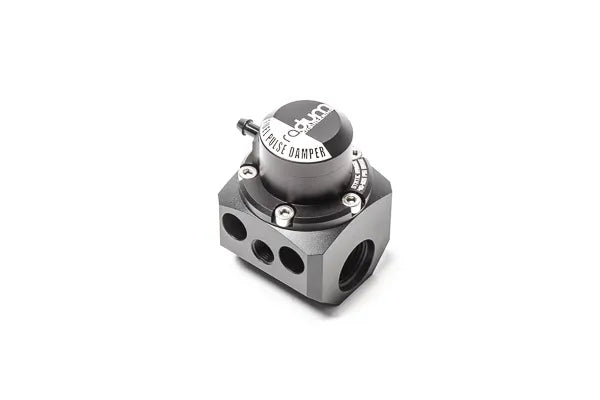 The opening and closing of fuel injectors creates pressure pulses in the fuel rail which can lead to unstable fuel pressure. In order to achieve a safe and consistent rail pressure, a fuel pulse damper (FPD) is often necessary. The FPD's internal diaphragm will absorb oscillating pulses and stabilize fuel pressure. This correction can be measured throughout the RPM range and can often help idle surge, especially with high flow injectors. Furthermore, a fuel pulse damper can help solve erratic lean air/fuel ratio spikes, commonly experienced as "stumbling", that are difficult to tune out.