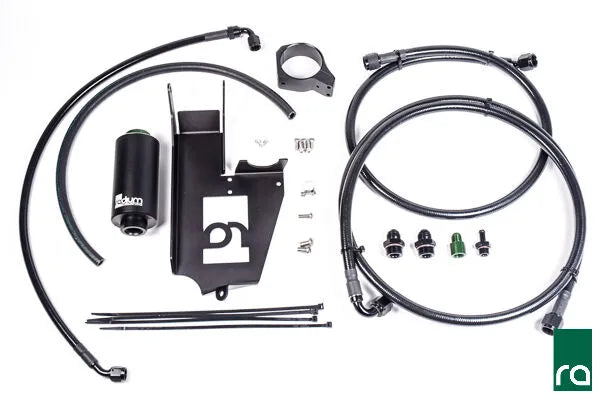 The plumbing kits include everything required to connect directly to an aftermarket (-8AN male) fuel rail and (-6AN male) FPR for both single and dual pump configurations. The includes a pre-made PTFE -8AN feed line from the hanger up to the engine bay and the kit re-uses the factory feed line as the regulator return line.