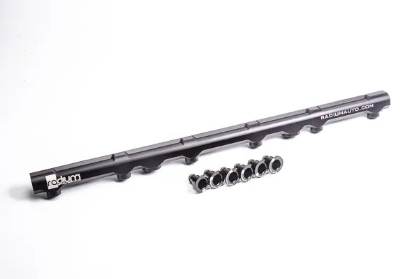The Radium fuel rail for the 6-cylinder Toyota 2JZ-GE (Non-Turbo) engine is manufactured with a large 8AN ORB internal bore supporting all horsepower requirements. They are CNC machined from 6063 aluminum, black anodized, and laser etched for a high quality surface finish. For flexibility, the fuel rail features four 8AN ORB ports and is compatible with all fuel types including popular alcohol mixtures such as E85.