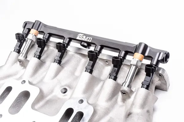 This Radium Engineering secondary fuel rail is for aftermarket 6-port intake manifolds that are produced for the Mazda 20B-REW rotary engine. The aluminum fuel rail is anodized black for compatibility with all popular fuel types including E85. Manufactured with a large internal bore, the fuel rail can support all necessary engine power requirements.